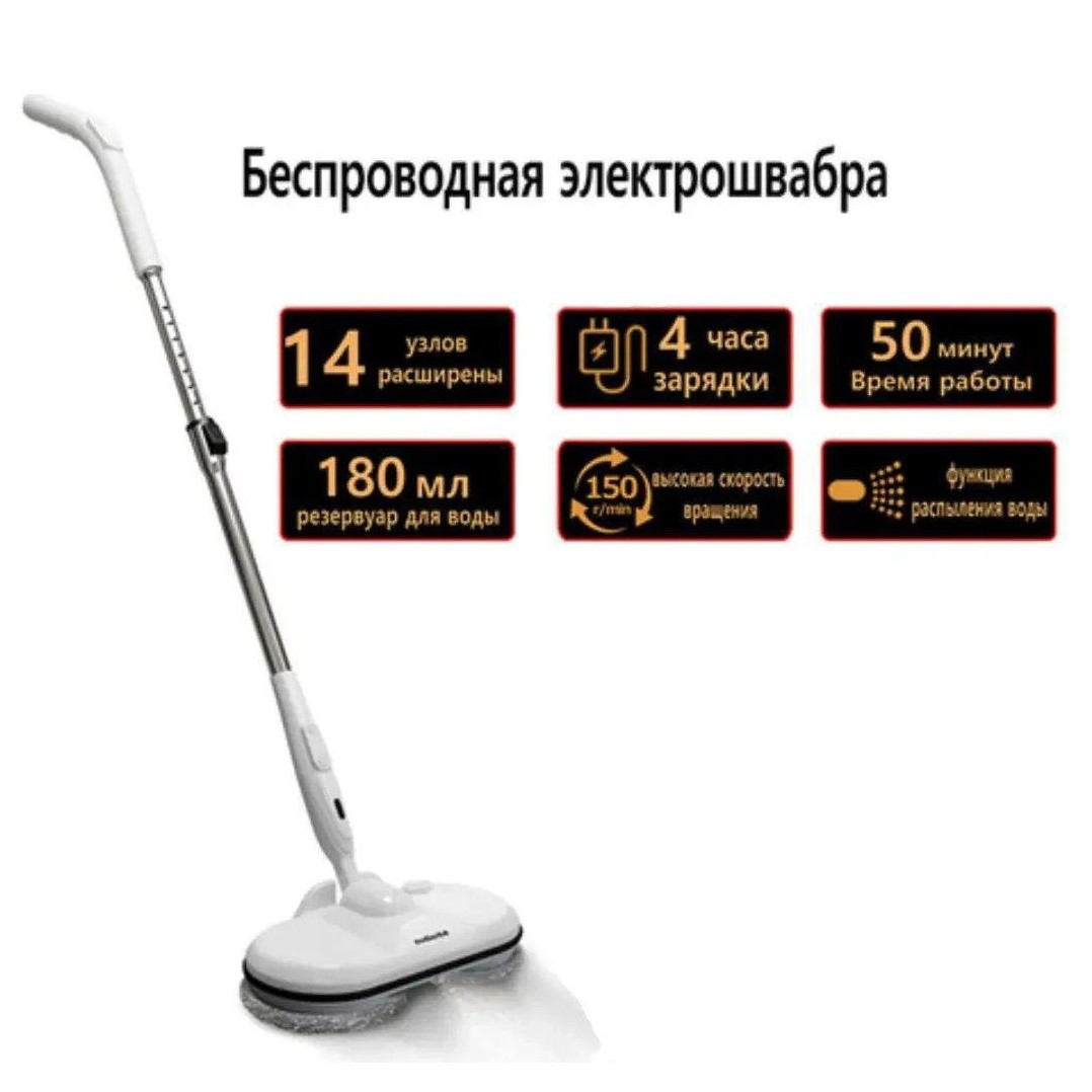 Простота керування з одним режимом швидкості робить процес прибирання ефективнішим. Завдяки акумуляторному живленню вам не потрібно турбуватися про дроти, й електрична швабра завжди готова до роботи.